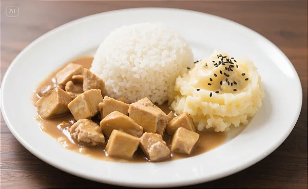 • Descrição: Um strogonoff de frango leve e delicioso, servido com arroz jasmim e purê funcional. Combinando sabor e nutrição em um só prato.